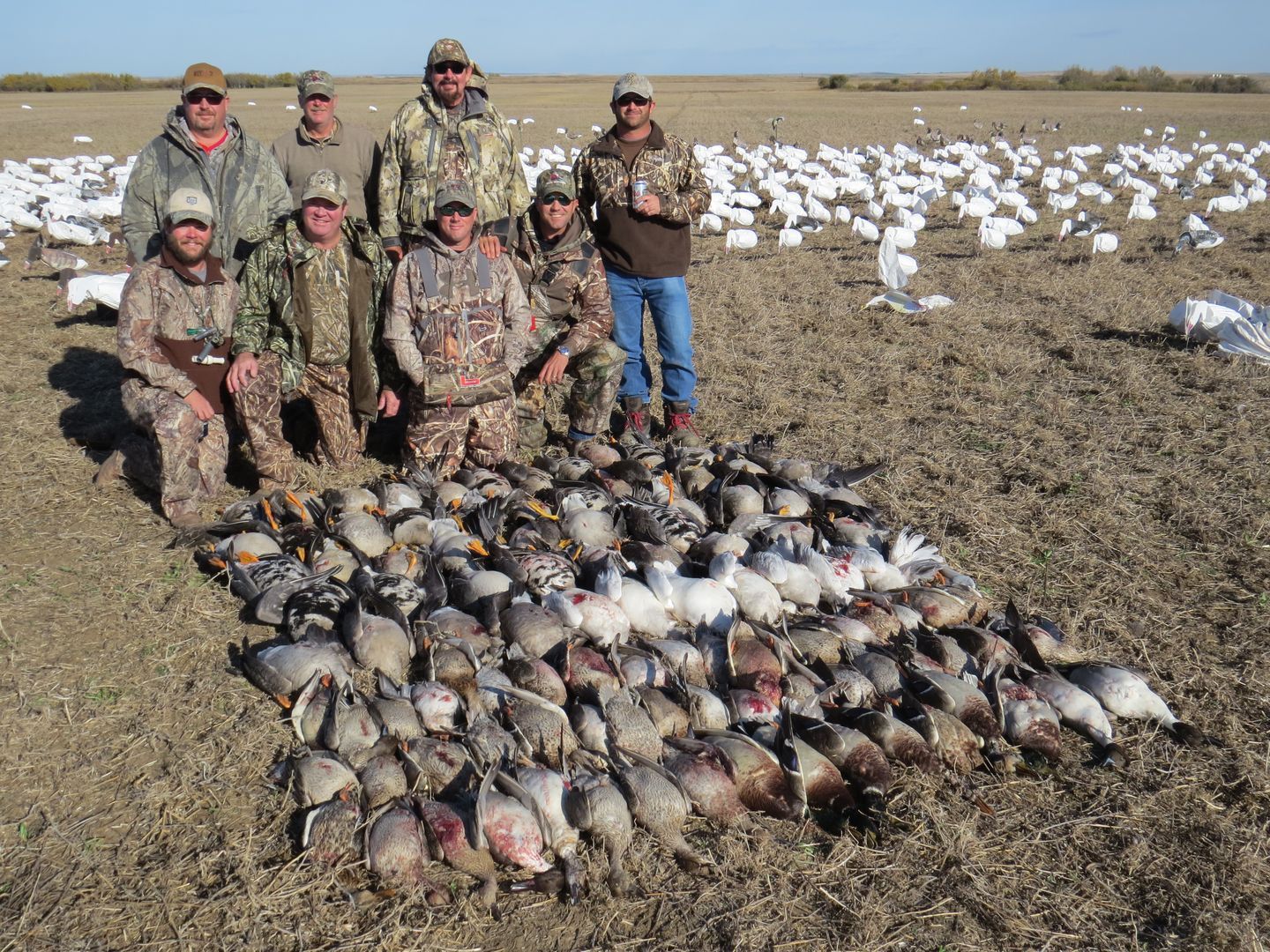 Each hunter can harvest 8 ducks, 8 dark geese, and 50 snow geese each day.